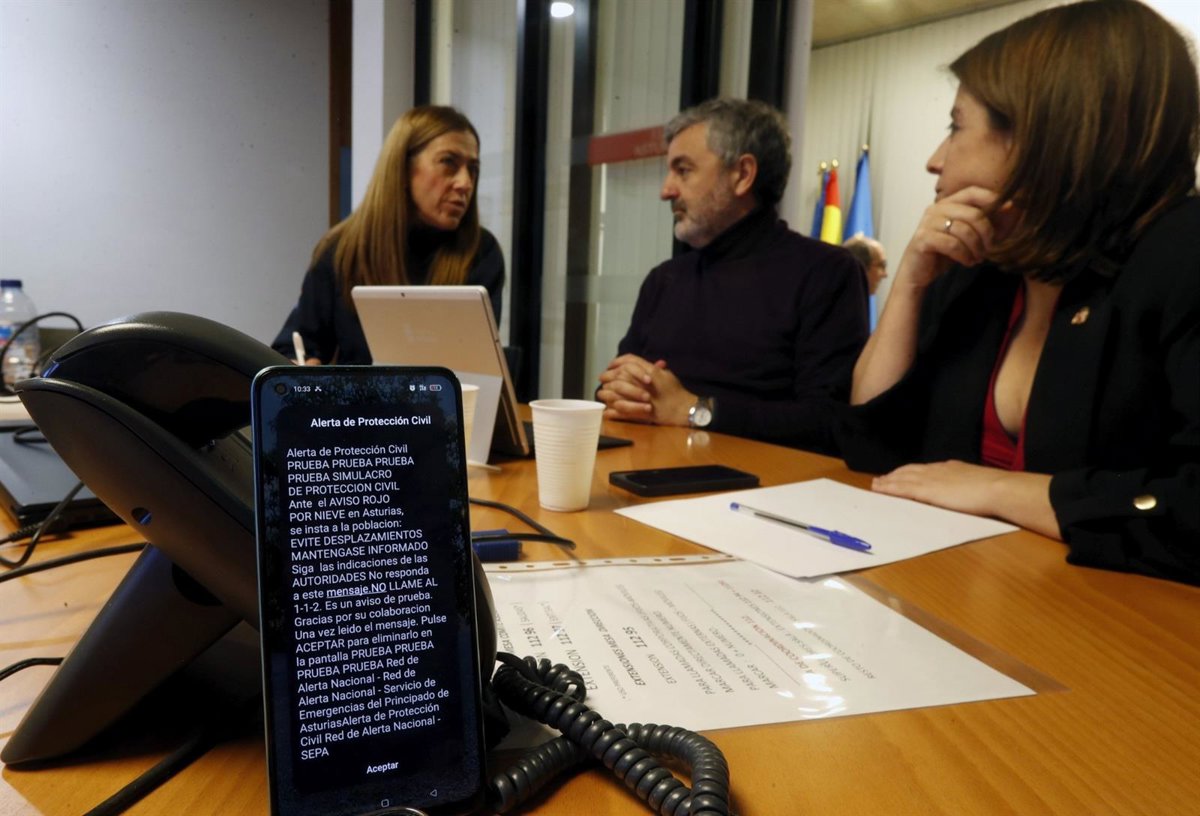 La directora general de Protección Civil y Emergencias del Ministerio del Interior, Virginia Barcones, ha participado este martes en un simulacro del sistema EsAlert en Asturias, destacando que "el objetivo es preparar a los equipos técnicos y a la población ante posibles eventualidades que pongan en peligro a la ciudadanía".