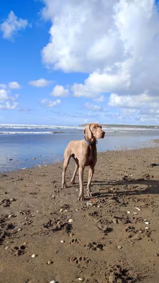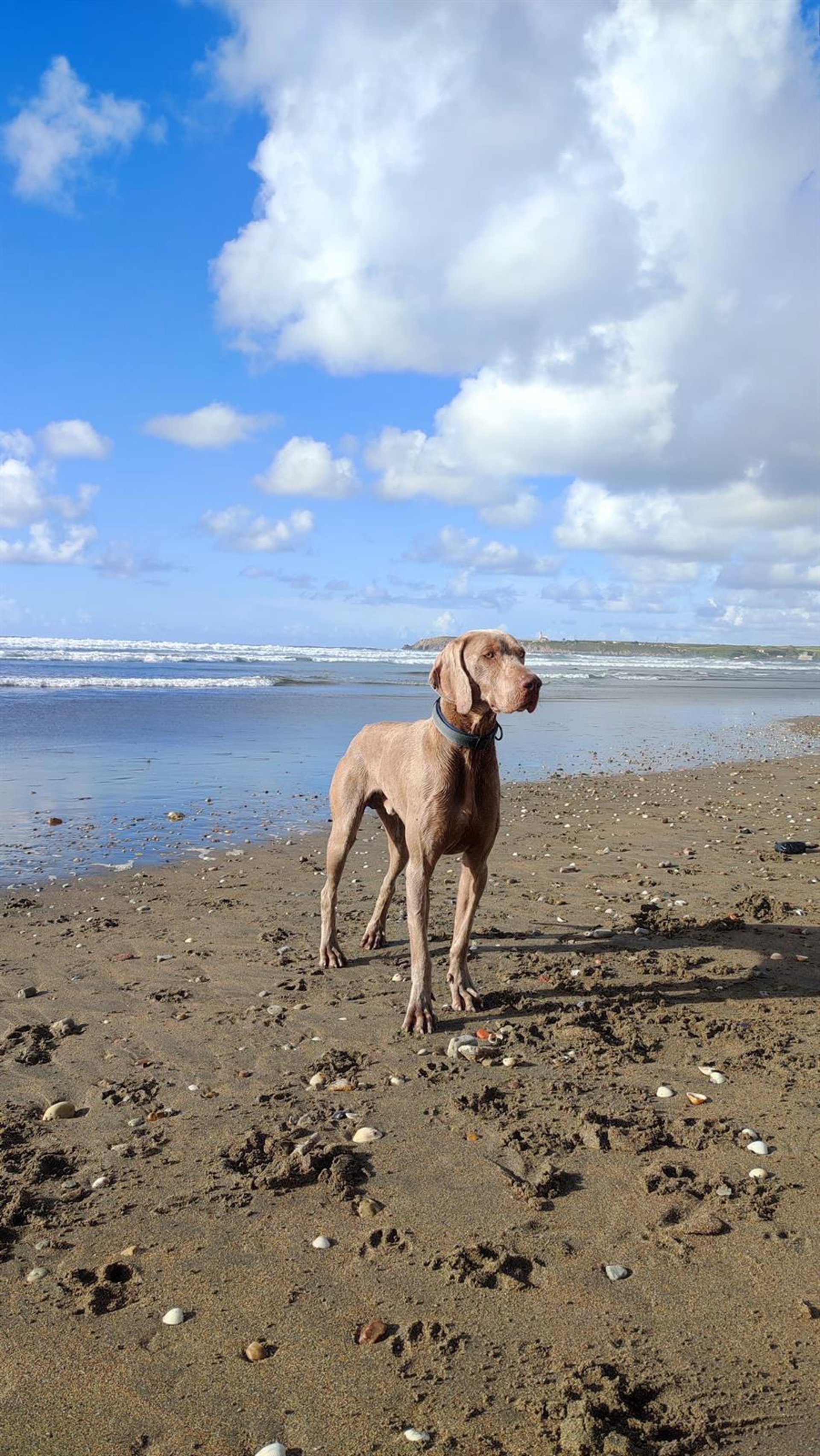 Perro en la playa de Salinas en invierno. - EUROPA PRESS.