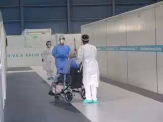 Primer paciente de coronavirus que llega al hospital del recinto ferial Luis Adaro de Gijón. - ASTURSALUD