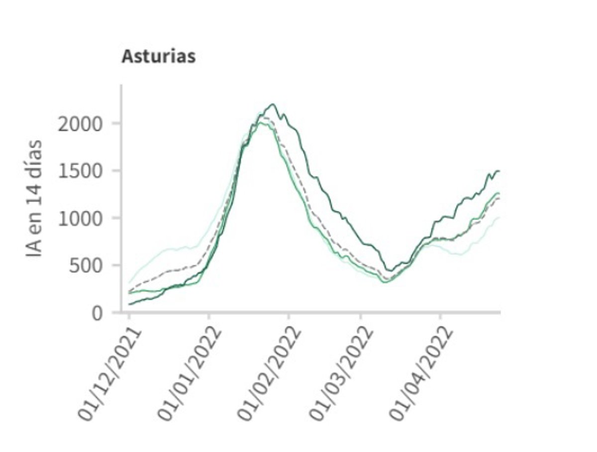 Gráfico con la evolución de la incidencia en Asturias - WEB DEL MINISTERIO DE SANIDAD