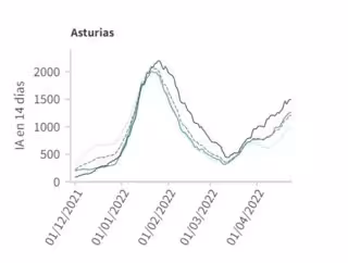 En cuanto a la incidencia en mayores de 60 años, se sitúa en Asturias en 1.205,49 casos por cada 100.000 habitantes en los últimos 14 días, muy superior a la incidencia nacional (608,16 casos).