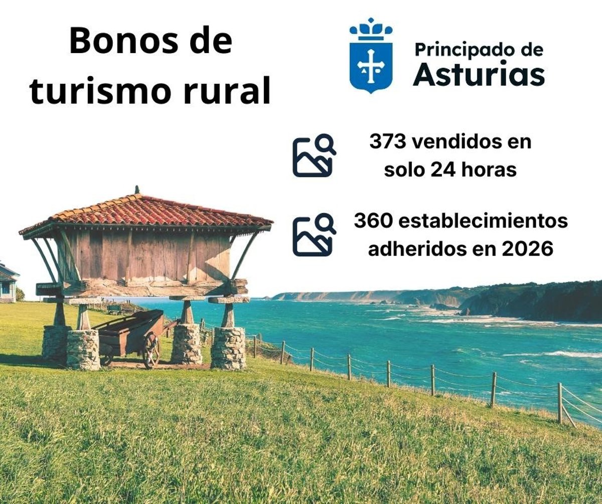 El Gobierno Asturias ha puesto en marcha una nueva campaña de bonos de turismo rural. En las 24 horas que llevan en marcha estos descuentos se han vendido 372 bonos y la red de alojamientos adheridos ha crecido casi un 73%, al pasar de los 208 registrados en 2025 a los 360 de este año.