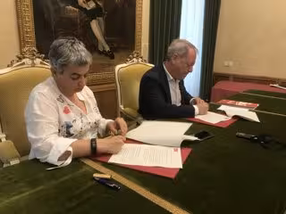La alcaldesa de Gijón, la socialista Ana González, y el concejal de IU Aurelio Martín han firmado un preacuerdo de gobierno que incluye 88 medidas y por el que el segundo pasará a formar parte de la Junta de Gobierno como responsable del área de Medio Ambiente y Movilidad.