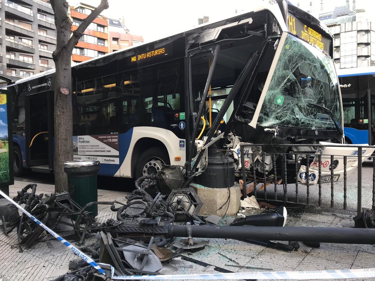 El incidente tuvo lugar poco antes de las 13.00 horas, y en el mismo solo estuvo implicado el autobús, que cubría la línea H1 de la Calle del Catedrático José María Serrano al centro comercial Intu Asturias.