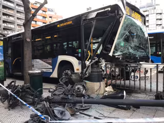 Según han apuntado fuentes de la Policía Local a Europa Press, el autobús "se quedó sin frenos" e impactó contra la farola, derribándola y generando numerosos desperfectos en el vehículo y el mobiliario urbano.