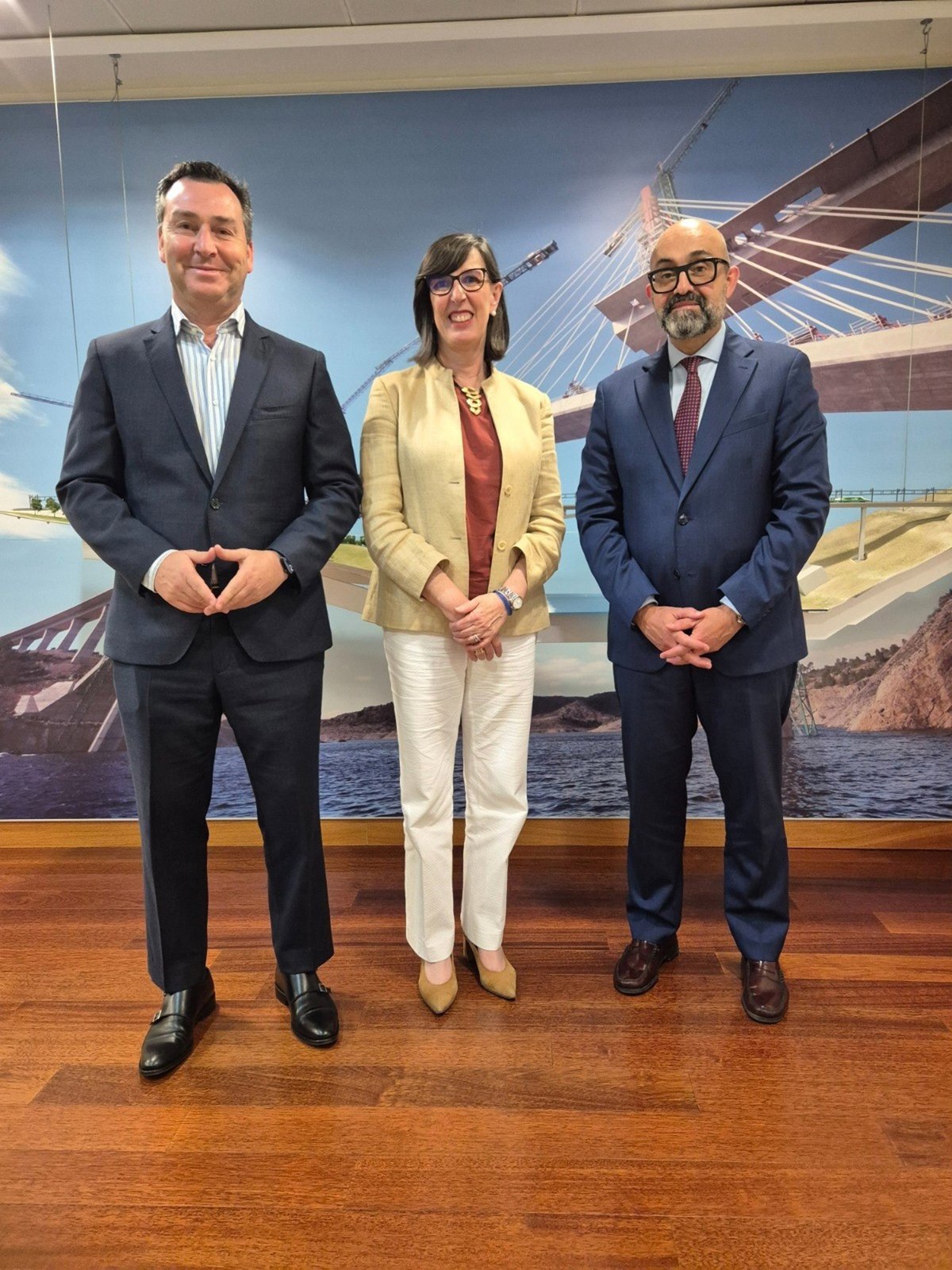 La presidenta de la Autoridad Portuaria de Gijón, Nieves Roqueñí, junto al presidente del Administrador de Infraestructuras Ferroviarias (ADIF), Pedro Marco de la Peña, y el presidente de Puertos del Estado, Gustavo Santana. - AUTORIDAD PORTUARIA DE GIJÓN