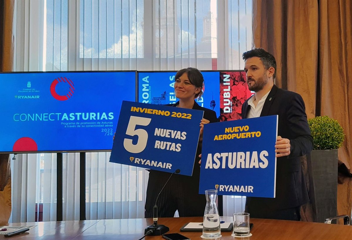 La country manager de Ryanair para España y Portugal, Elena Cabrera, ha anunciado este miércoles en Gijón que a las rutas internacionales desde el aeropuerto de Asturias, con destino Bruselas, Roma y Dusseldorf, desde el próximo 30 de octubre, le sumarán otras dos, a Londres y Dublín, la próxima primavera.