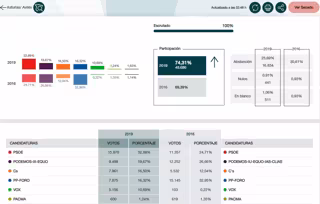 De esta forma, el PSOE ha obtenido el 32,89 por ciento de los votos, Unidas Podemos el 19,67%, Ciudadanos el 16,50%, PP-Foro el 16,32% y Vox el 10,69%.