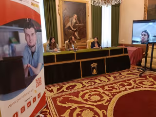 "Hay margen de mejora", ha destacado Pumariega, acompañada de la directora general de Promoción del Empleo de Gijón, Carla Álvarez, la secretaria general de Fundación ONCE e Inserta Empleo, Virginia Carcedo, y la directora regional de Inserta en Asturias y Cantabria, Beatriz Ávila, durante la presentación del convenio en el Salón de Recepciones municipal.
