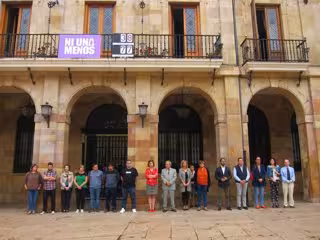 Los concejales del Ayuntamiento de Oviedo se han concentrado este viernes en contra de la violencia machista, tras los últimos asesinatos registrados en el mes de septiembre, en el que al menos ocho mujeres y dos menores han perdido la vida.