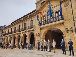 El Ayuntamiento de Oviedo ha organizado, como cada último viernes de mes, esta concentración de repulsa contra la violencia de género. Esta ha sido la primera en la denominada 'nueva normalidad' después de decaer el Estado de Alarma decretado contra el coronavirus.