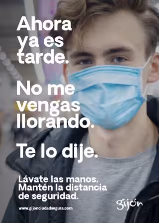 Un cartel de la campaña de Gijón para mantener las medidas de seguridad contra el COVID - DIVERTIA