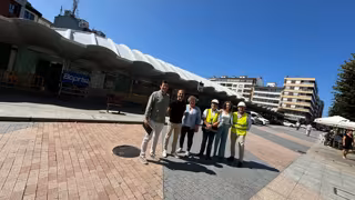 El alcalde de Siero, Ángel García, y la concejala de Mayores y Patrimonio, Pilar Santianes, han visitado este viernes el inicio de las obras de renovación del exterior de la plaza cubierta de Pola de Siero, con un presupuesto de 47.995,68 euros y dos meses de ejecución.