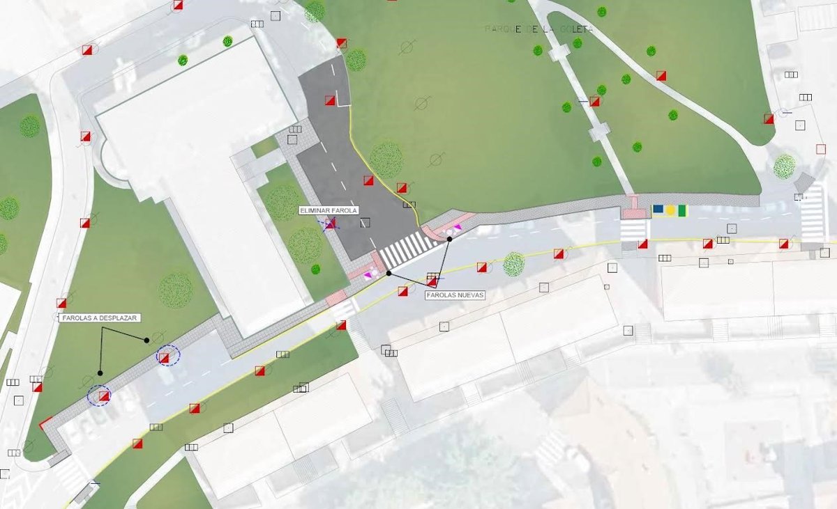 Actualmente, la travesía de la Iglesia no cuenta con aceras accesibles. De acuerdo con el compromiso del Ayuntamiento de Avilés con la mejora de la accesibilidad de toda la ciudad, se construirá una nueva acera, además de ensanchar la ya existente, para cumplir con la normativa y también mejorar la seguridad de los viandantes en ese punto. Las obras consistirán en la construcción de un nuevo tramo de acera con pavimento de hormigón impreso y en el ensanche del tramo existente en la zona del Parque de La Goleta.