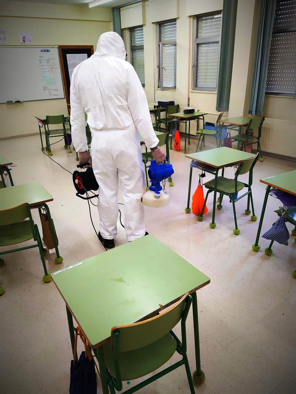 Archivo - Desinfección a cargo de Emulsa de un aula en un colegio de Gijón con positivos de COVID-19 (Archivo) - EMULSA - Archivo