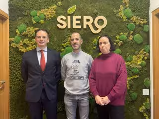 El director del sector público en Asturias de Inetum, Javier Serrano, el alcalde de Siero, Ángel García, y Marta Piquero, técnica del Servicio de Promoción Económica del Ayuntamiento de Siero. - AYUNTAMIENTO DE SIERO