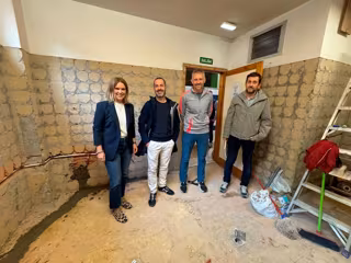 El alcalde de Siero, Ángel García, y la concejala de Educación, Igualdad y Juventud, Eva Iglesias, han visitado este jueves las obras de reforma los baños de la primera planta del CP Santa Bárbara de Lugones.