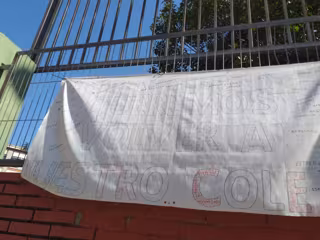 Pancarta en el colegio público Rey Pelayo (Gijón) pidiendo la vuelta al centro educativo - EUROPA PRESS