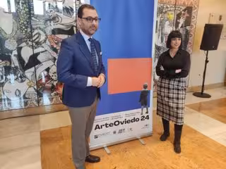 El edil ha participado en la presentación del evento junto a la directora artística de ArteOviedo 2024, Natalia Alonso. La muestra comenzará el 14 de noviembre y se desarrollará hasta el día 17 en la Plaza de Trascorrales.