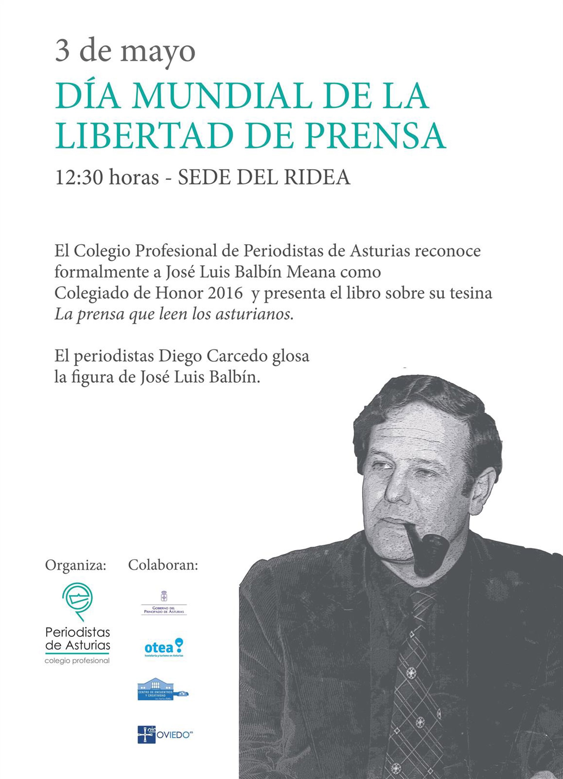 El periodista asturiano José Luis Balbín será nombrado este próximo martes, 3 de mayo, Colegiado de Honor 2016 del Colegio Profesional de Periodistas de Asturias, coincidiendo con la celebración del Día Mundial de la Libertad de Prensa.