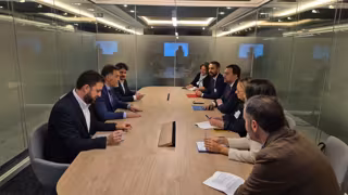 El presidente del Principado, Adrián Barbón, con el equipo del eurodiputado asturiano Jonás Fernández. - PRINCIPADO