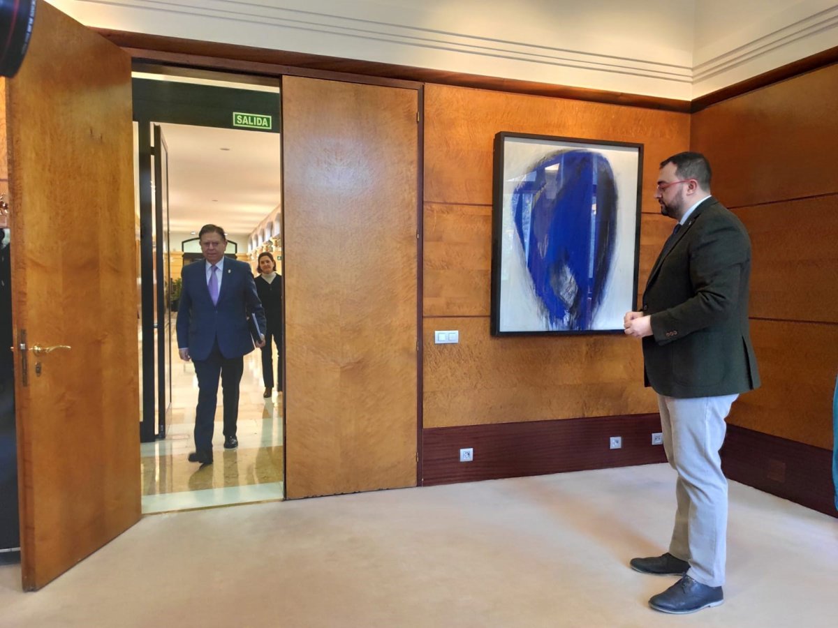 Archivo - El presidente del Principado de Asturias, Adrián Barbón, recibe al alcalde de Oviedo, Alfredo Canteli. - EUROPA PRESS - Archivo