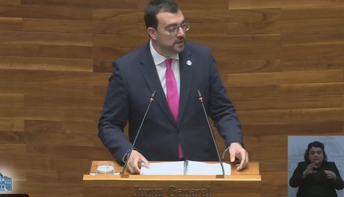 El presidente del Principado, Adrián Barbón, en la Junta General. - CAPTURA WEB JGPA