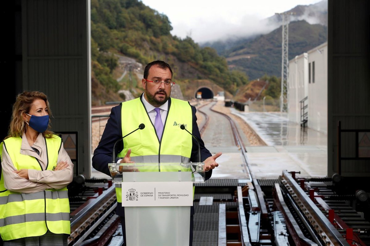 Archivo - El presidente del Principado, Adrián Barbón, tras el primer viaje en pruebas en tren por la variante ferroviaria de Pajares, desde La Robla a Campomanes. - GOBIERNO DE ASTURIAS - Archivo