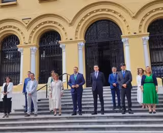 Durante su intervención en el acto institucional de toma de posesión de los integrantes del nuevo Consejo de Gobierno, que ha tenido lugar en el Salón Europa de la Junta General tras realizar la foto de familia en la sede de la Presidencia, Barbón les ha animado a afrontar la legislatura con afán "constructivo".