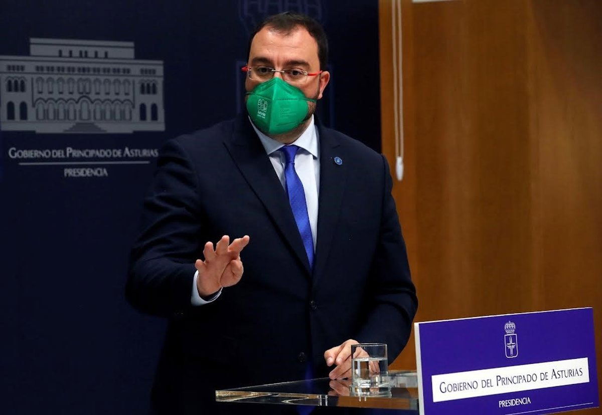 El presidente del Principado de Asturias, el socialista Adrián Barbón, ha recibido este lunes el alta hospitalaria y seguirá recuperándose de su infección por coronavirus en el Palacio de Presidencia.