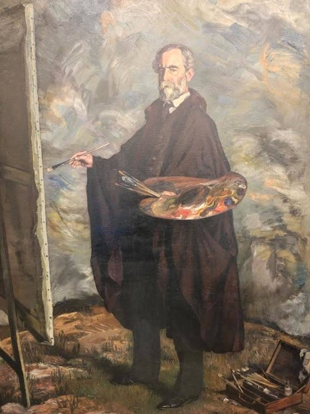 El cuadro representa al pintor y grabador asturiano Fermín Arango (Santalla de Oscos, 1874 - Cergy-Pontoise, París, 1962), retratado al aire libre mientras pinta, con traje oscuro y capa española sobre un fondo de nubes tormentosas. La obra destaca por su riqueza técnica, con pinceladas amplias, empastes densos y una paleta sobria, así como por simbolizar la amistad y admiración mutua entre Zuloaga y Arango.