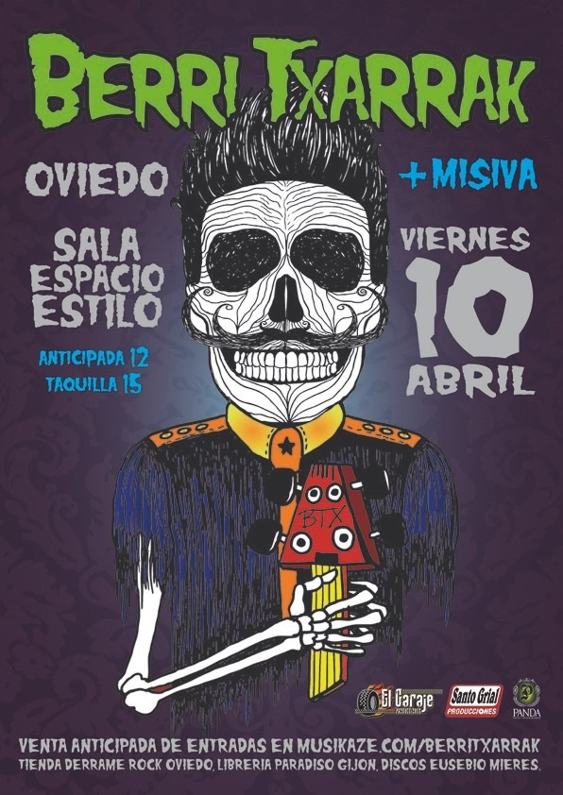 Las entradas para el concierto, en el que también estará el grupo asturiano de punk-rock Misiva, tienen un precio de 12 euros anticipada y 15 en taquilla.
