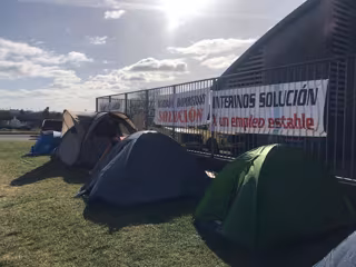 Bomberos acampados en las inmediaciones de las instalaciones de La Morgal han reclamado este martes estabilidad laboral así como mayor seguridad y eficacia en el servicio de extinción de incendios.
