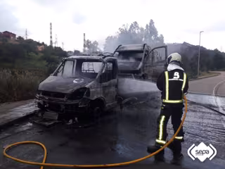 Bomberos del Servicio de Emergencias del Principado de Asturias (SEPA), con base en el parque de Avilés, han extinguido el incendio declarado en un camión grúa que remolcaba una furgoneta de jardinería en las inmediaciones de El Empalme, en la AS-388, punto kilométrico 11, en Carreño.
