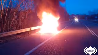 Efectivos de Bomberos del Servicio de Emergencias del Principado de Asturias (SEPA), con base en el parque de Llanes, han extinguido este sábado el incendio de un coche en la A-8, a la altura del punto kilométrico 312, sentido Oviedo, cerca de la localidad de Nueva, en Llanes. El vehículo se calcinó por completo.