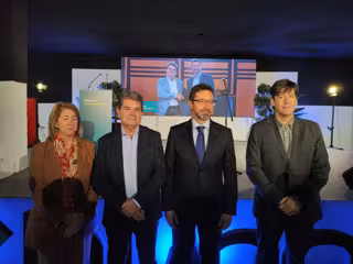 Celia Fernández, vicepresidenta de la Junta General; José Ramón Martín Ardines, alcalde de San Martín del Rey Aurelio; Enrique Fernández, presidente de Hunosa y Borja Sánchez, consejero de Ciencia, Industria y Empleo. - GOBIERNO DE ASTURIAS