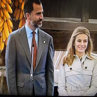 Junto a la intensa lluvia, una de las anécdotas de la jornada fue la parada de los Príncipes ante un grupo de vecinas que realizaban tareas de encaje de bolillos bajo un hórreo y que les obsequiaron con un diario y marcapáginas de encaje para las Infantas Leonor y Sofía.