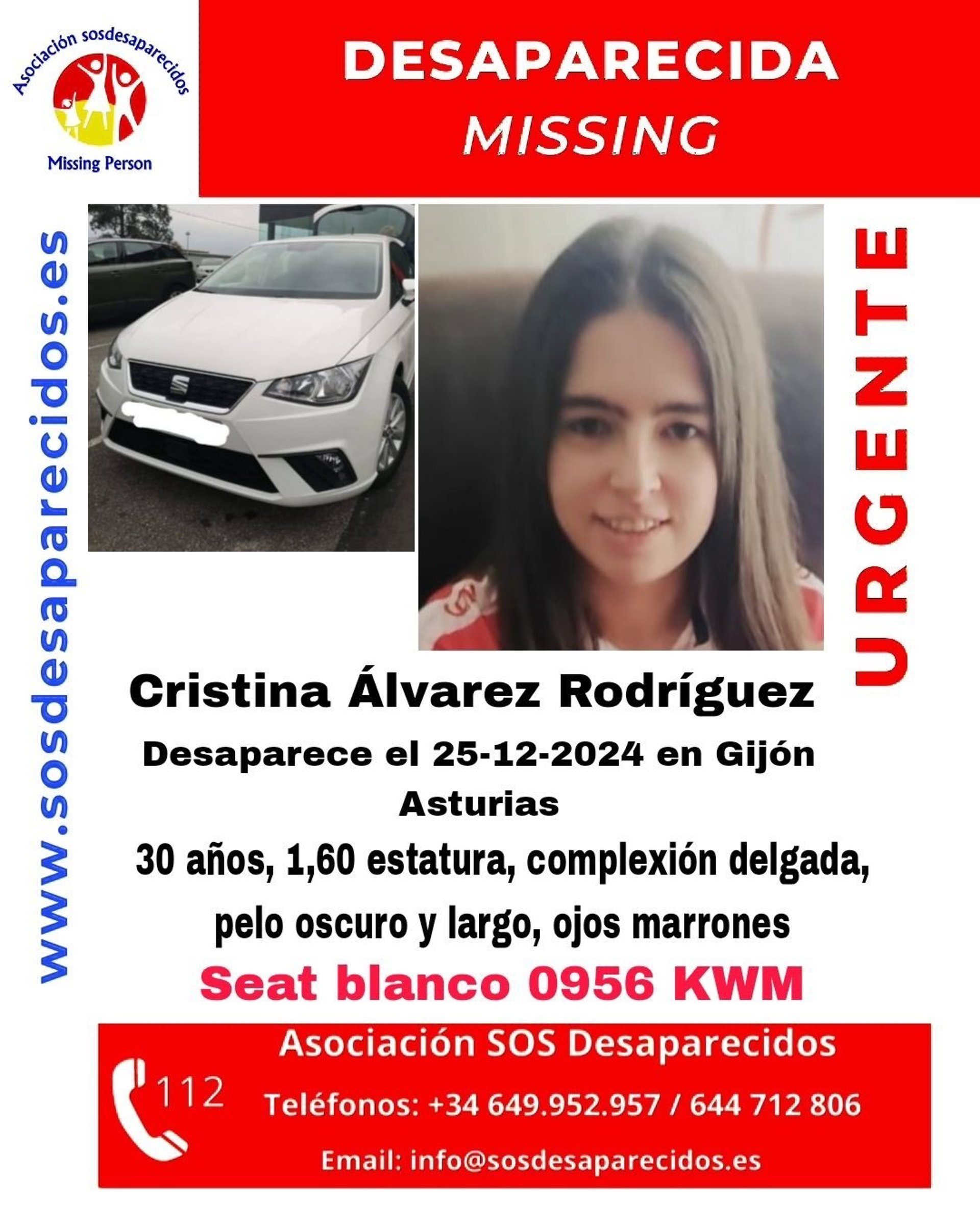 La familia de una gijonesa de 30 años, Cristina Álvarez Rodríguez, ha interpuesto una denuncia en la Policía Nacional de desaparición de la joven, de la que no tienen noticias desde este pasado miércoles, día de Navidad.
