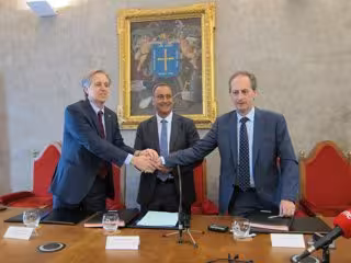 El consejero de Infraestructuras, Ordenación del Territorio y Medio Ambiente, Fernando Lastra, ha firmado el convenio, acompañado por el presidente de ArcelorMittal España, José Manuel Arias, y por el director general de la compañía, Oswaldo Suárez.