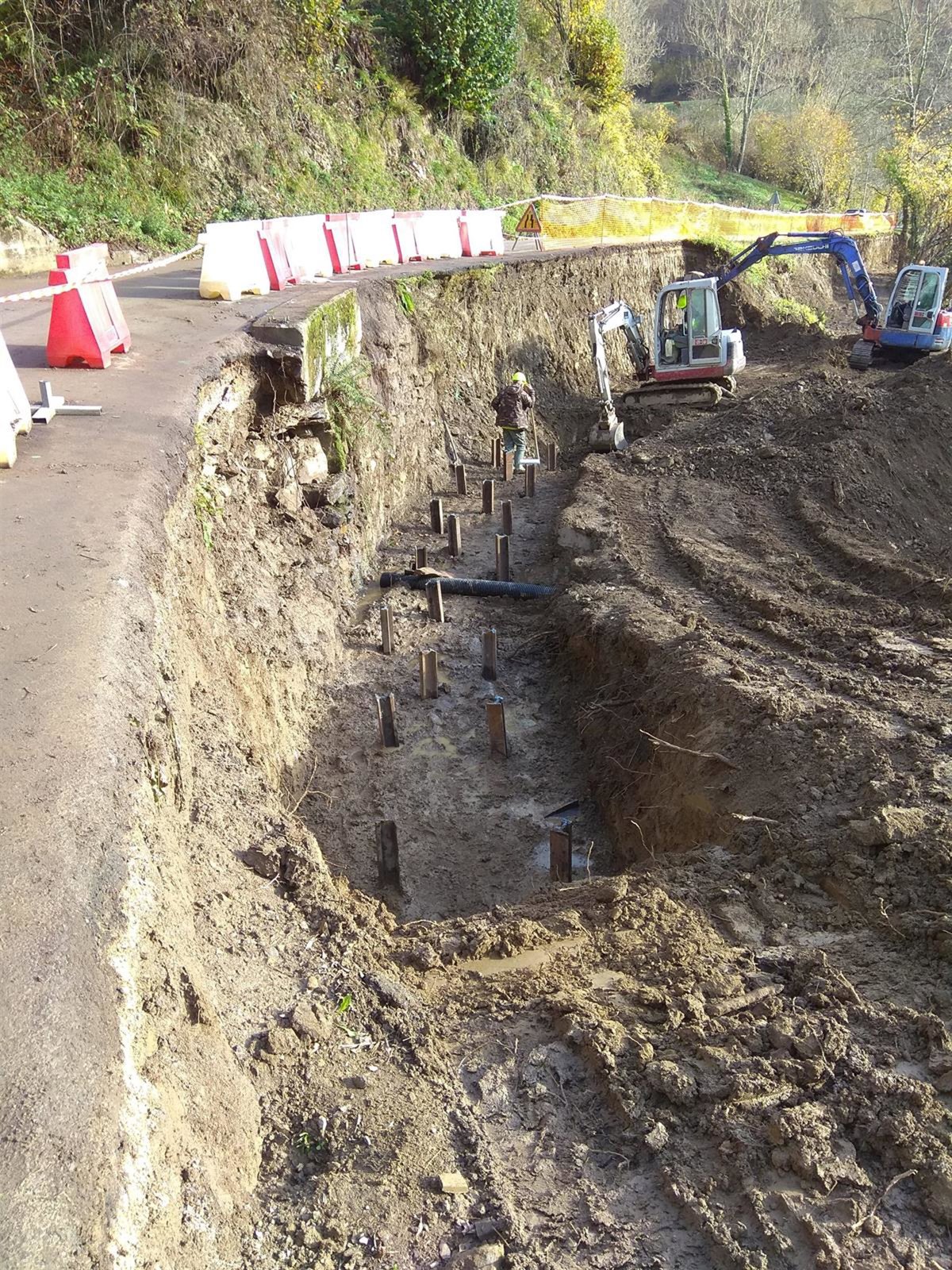 Las obras consistieron en la construcción de un tramo de escollera de sostenimiento de unos 80 metros de longitud en la margen derecha de esta carretera. Una vez realizada la excavación se procedió a la construcción de un muro con una altura de tres metros. Se concluyó con la colocación del firme con base de zahorra y capa de rodadura. El plazo inicial de ejecución de las obras era de dos meses, pero se prorrogó con motivo de las últimas nevadas, ante la imposibilidad de proceder al aglomerado.