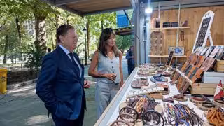 El alcalde de Oviedo, Alfredo Canteli, y la concejala de Economía, Leticia González, visitan el mercado de San Mateo. - EUROPA PRESS