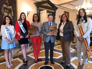El alcalde de Oviedo, Alfredo Canteli, ha recibido este jueves en el Salón de Plenos a una delegación del Ayuntamiento de Torrevieja, formada por la concejala de Fiestas y la Corte de la Sal, con motivo de la celebración el pasado mes de agosto del décimo aniversario del hermanamiento entre ambas ciudades. "En el día del desfile de América en Asturias habrá tres reinas: las de Oviedo, las de Torrevieja y las del Centro Asturiano. De lo cual me alegro mucho. No inventamos nada, ya estaba todo inventado", ha celebrado.