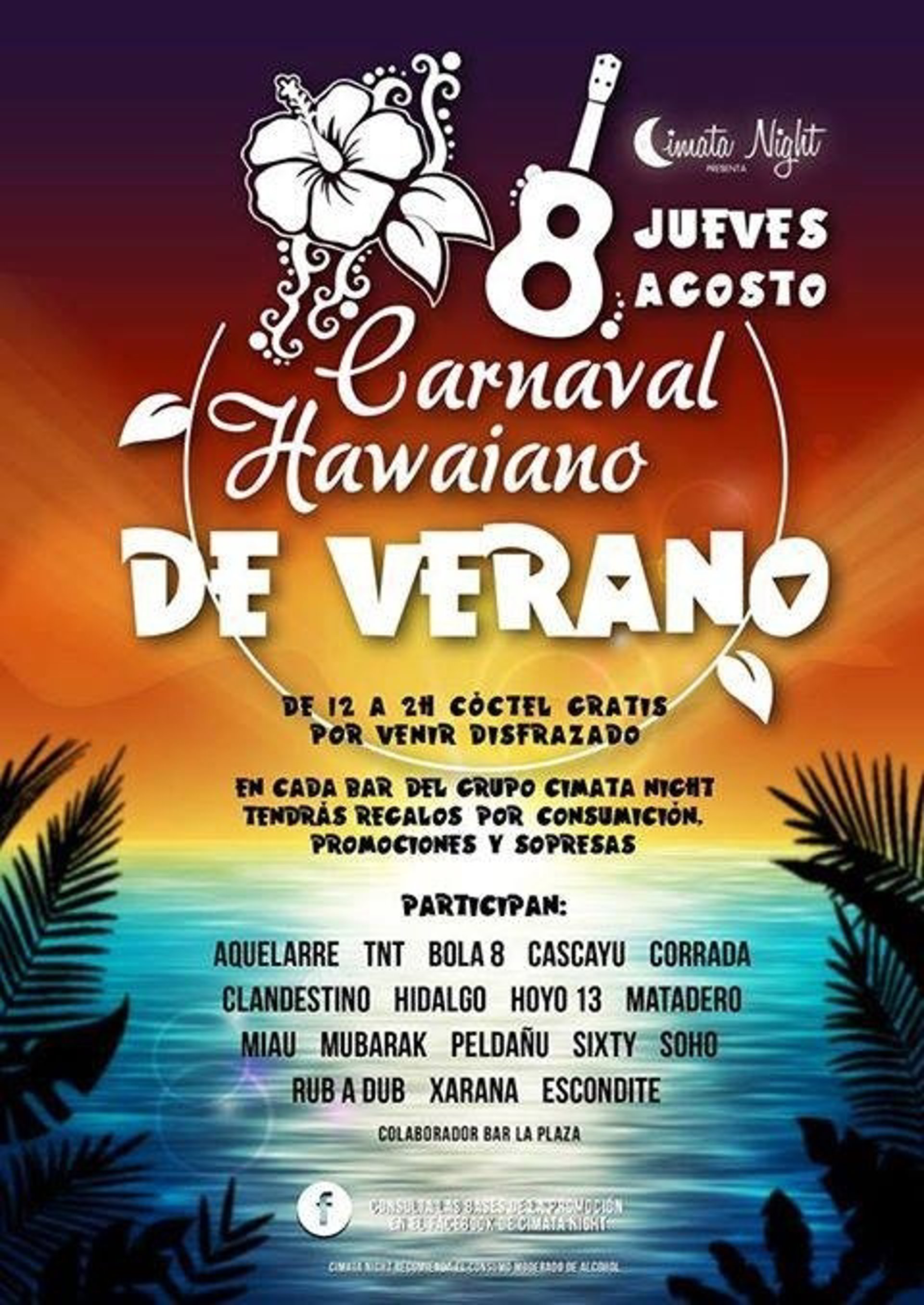El grupo 'Cimata Night' en el que participan cerca de una veintena de locales del barrio de Cimadevilla, en Gijón, organiza, este jueves, 8 de agosto, a partir de media noche el primer Carnaval Hawaiano de esta ciudad.