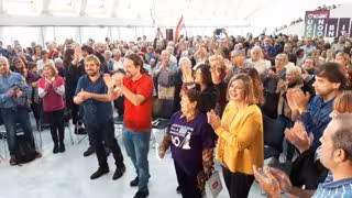 Fue especialmente aplaudida su portavoz con gritos de 'Sí se puede' y Pablo Iglesias recibió una camiseta reivindicativa al respecto. El candidato Rafael Mayoral quiso referirse específicamente a esta situación y lanzó un mensaje al presidente del Gobierno asturiano, Adrián Barbón (PSOE). "Le digo que es un imperativo democrático impedir los desahucios de La Camocha", ha exclamado tras insistir en que las instituciones "no están para mirar hacia otro lado cuando la gente vulnerable es arrollada por los poderosos".