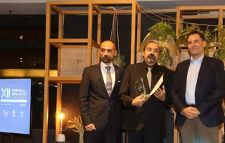Imagen de archivo del catedrático de Informática Juan Manuel Cueva Lovelle recibiendo el premio Impulso TIC 'Mención especial' - CITIPA/COIIPA