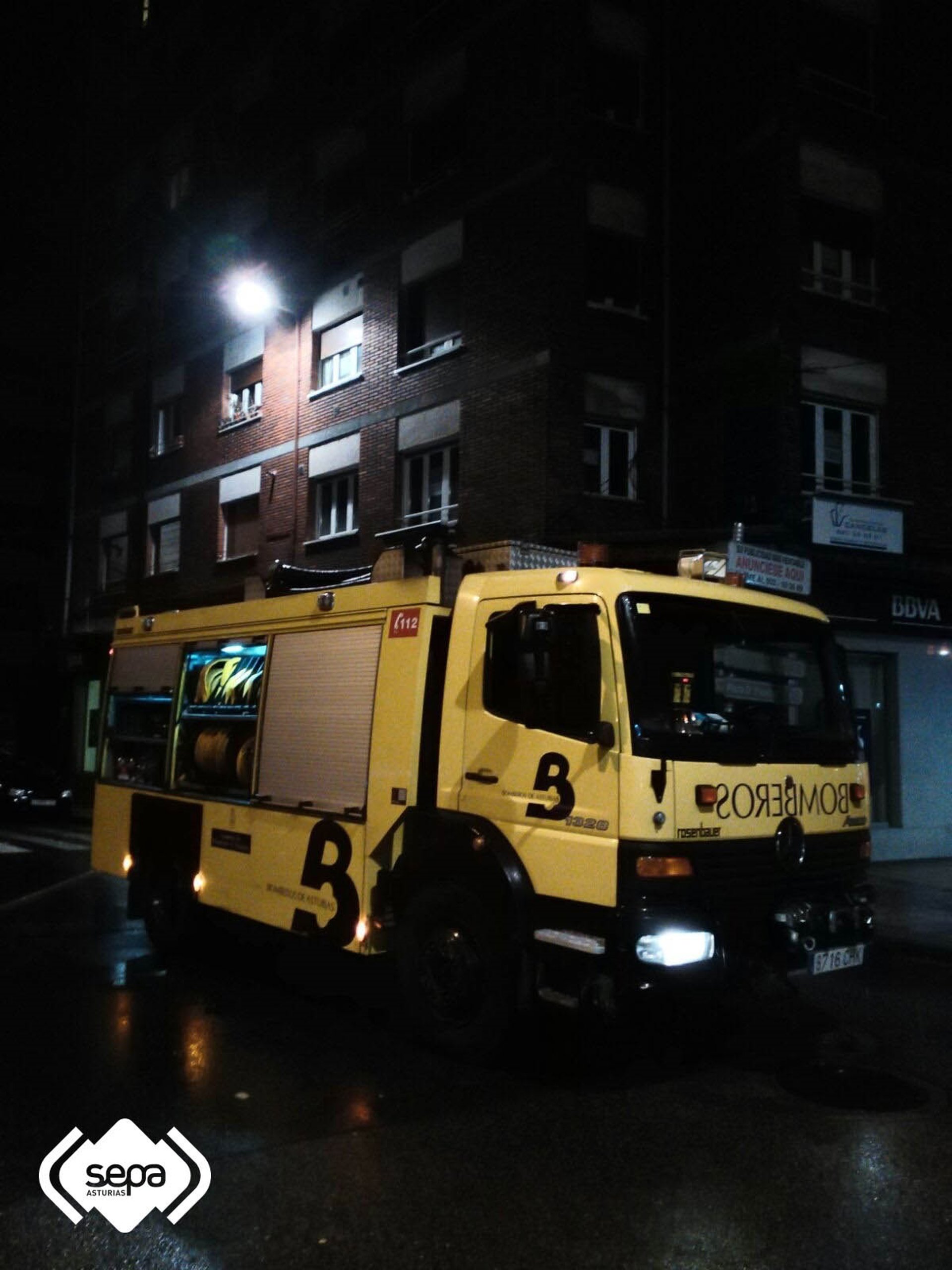 La Sala 112 del SEPA (Servicio de Emergencias del Principado de Asturias) movilizó tres dotaciones de Bomberos de los parques de San Martín del Rey Aurelio, Mieres y Caso y activó también al Jefe de Zona. Paralelamente avisó al SAMU y alertó a la Policía Local y Nacional. Fue precisamente una patrulla de la Policía Nacional, la que a las 20.39 horas, ya desde el lugar, solicita asistencia sanitaria para la inquilina del inmueble. Además señala que los vecinos de las plantas inferiores están fuera.