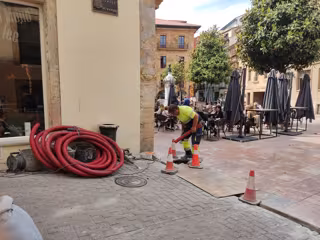 Un trabajador en la Plaza del Riego de Oviedo. - EUROPA PRESS