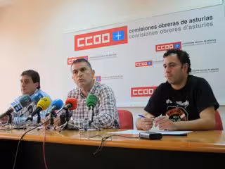 Maximino García, secretario general de la Federación de Industria de Comisiones Obreras, ha ofrecido este miércoles una rueda de prensa, acompañado de José López, secretario de la sección del sindnicato y Alas Aluminium, y de Juan Baisaneque, responsable de la Federación de Industria de CC.OO en la cuenca del Nalón.