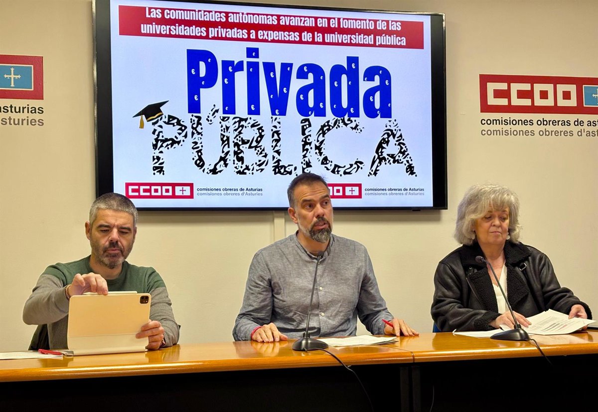 Ante este escenario, el secretario general de CCOO en Asturias, José Manuel Zapico, ha hecho un llamamiento al Gobierno autonómico para que se posicione a favor de la universidad pública y no facilite la llegada de centros privados, en un contexto en el que, según ha recordado, España cuenta actualmente con 48 universidades privadas y 50 públicas.