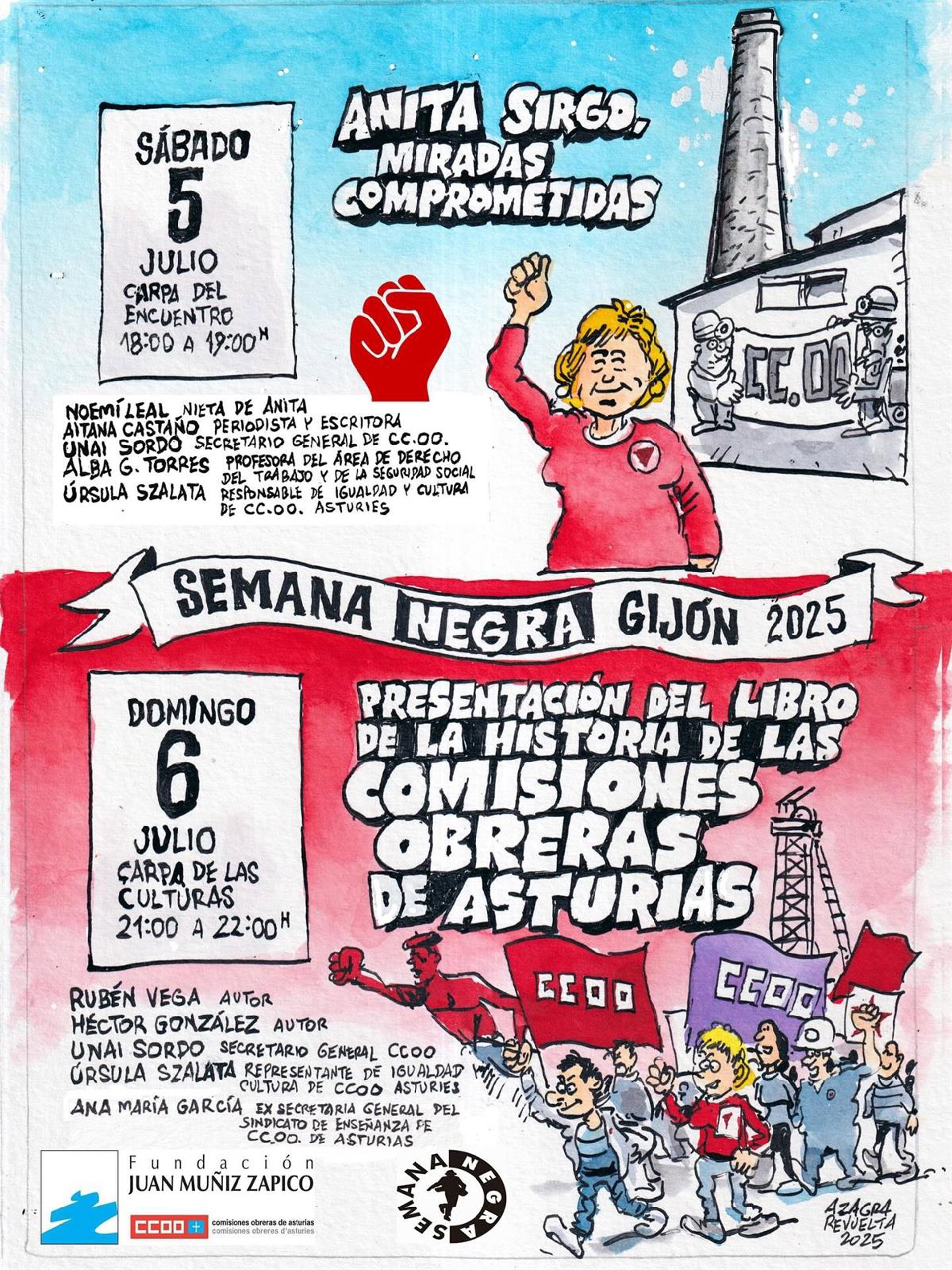 La Fundación Juan Muñiz Zapico participa este fin de semana en la Semana Negra de Gijón con la presentación de dos publicaciones centradas en la memoria obrera y el movimiento sindical en Asturias. Este sábado, a las 18.00 horas, en la Carpa del Encuentro del recinto del festival, se presenta el libro Anita Sirgo, miradas comprometidas.